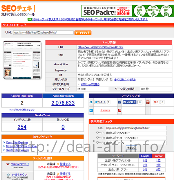 「出会い系アフィリエイト」というキーワードがしょっぱなに出とるやろ。